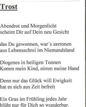Diese 14 Gedichte habe ich im Jahr 1999 frei aus dem Unterbewusstsein heraus, und ohne eine bestimmte Absicht zu verfolgen, zu Papier gebracht. Der intellektuelle Unterhaltungswert erschließt sich hier nicht. Aber dafür ein tiefes Empfinden ein Seelenmensch zu sein.
